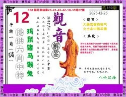 359期开奖时间2025年12月25 星期四)晚9:30开(农历十一月初六 龙冲狗)